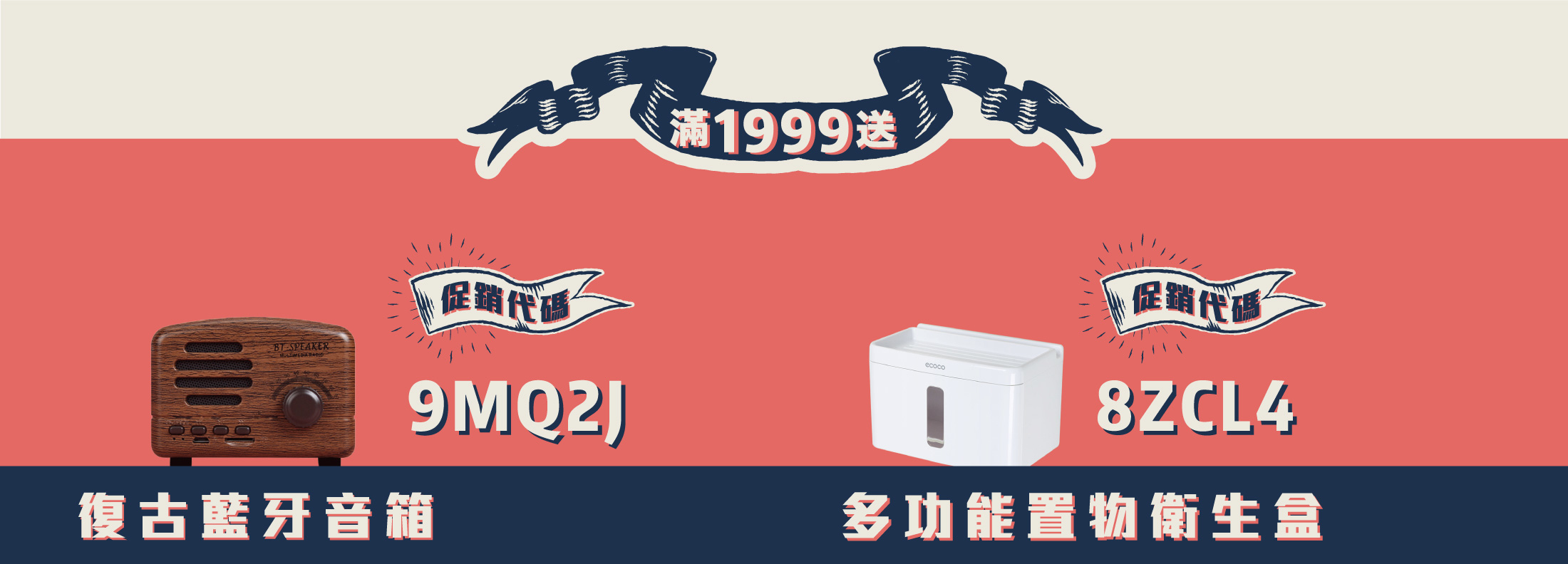 | 1999元 | 送價值279元 復古藍牙迷你音箱1入※顏色隨機 | 9MQ2J |