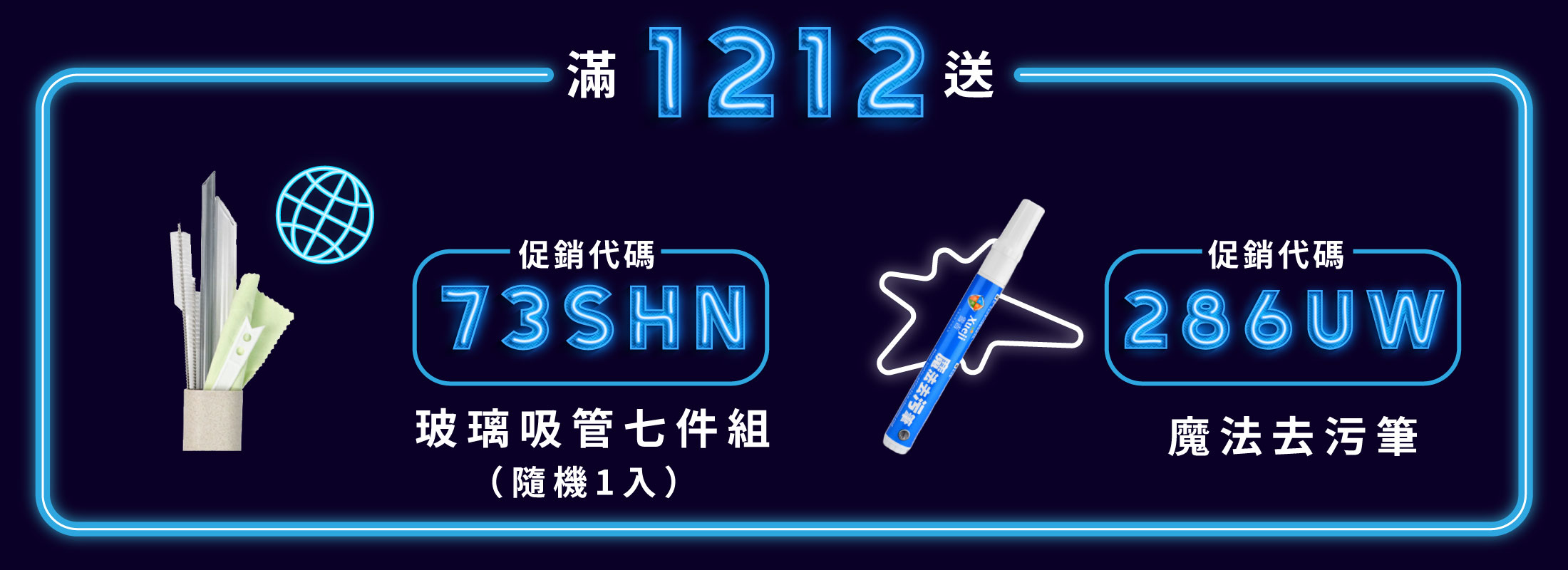 | 1212元 | 送價值149元玻璃吸管七件組1入※顏色隨機 | 73SHN |