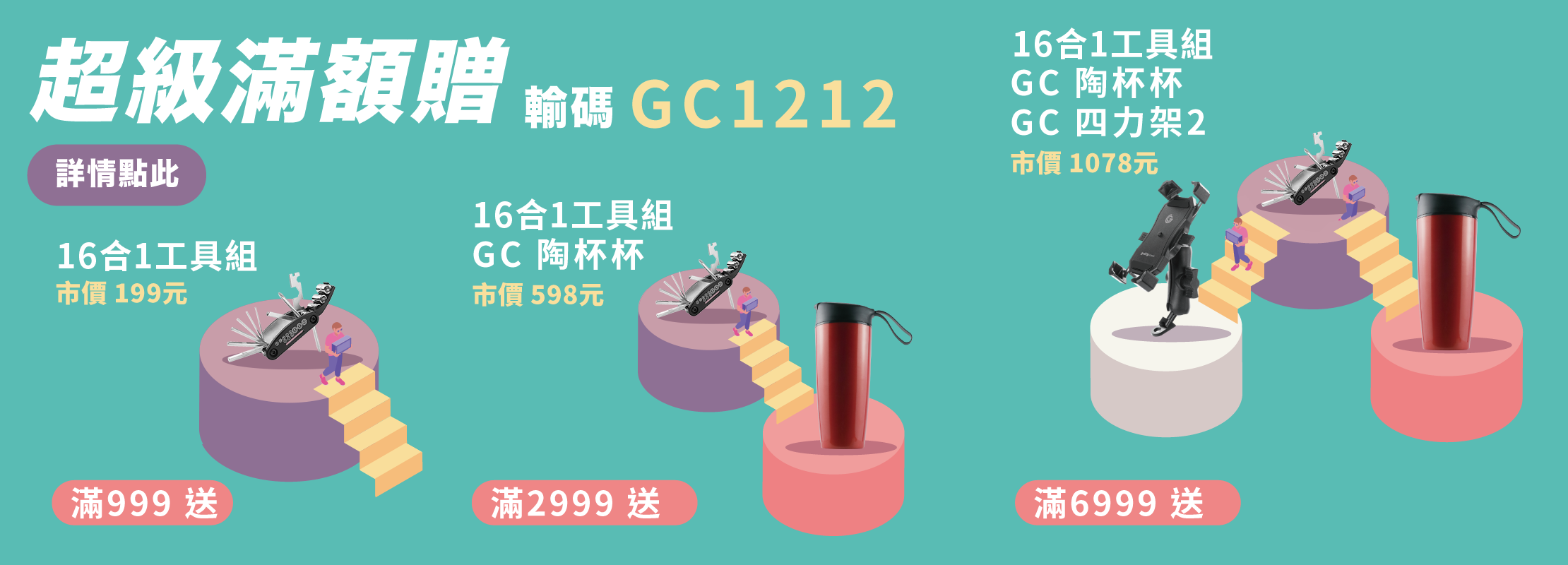 | GC1212 | 999 | 199 | GC 享放架-簡易版 or 16合1工具組 |