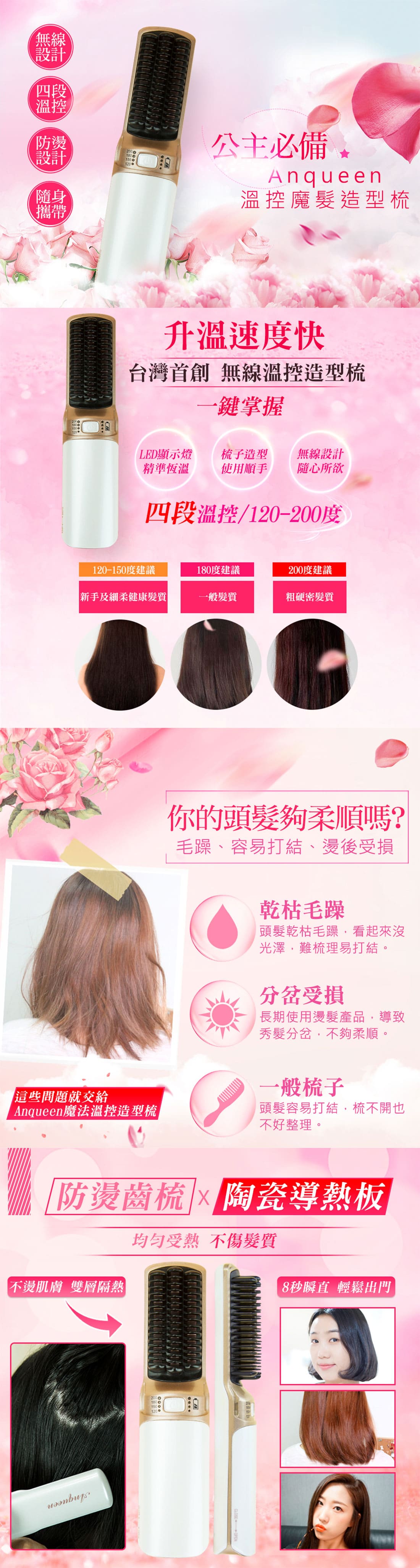 ANQUEEN 溫控魔髮造型梳|不傷髮質 超柔順