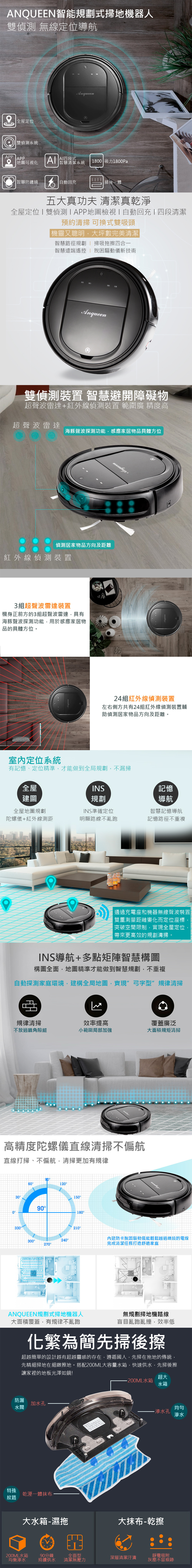 ANQUEEN 智能規劃式 掃地機器人,超越小米掃地機 米家掃地機,雙偵測無線定位導航,全屋定位,APP地圖可視化,智慧防纏繞,AI四段式智慧清潔系統,自動回充,吸力1800Pa,掃吸拖擦四合一,預約清掃,可換式雙吸頭,智慧遠端遙控