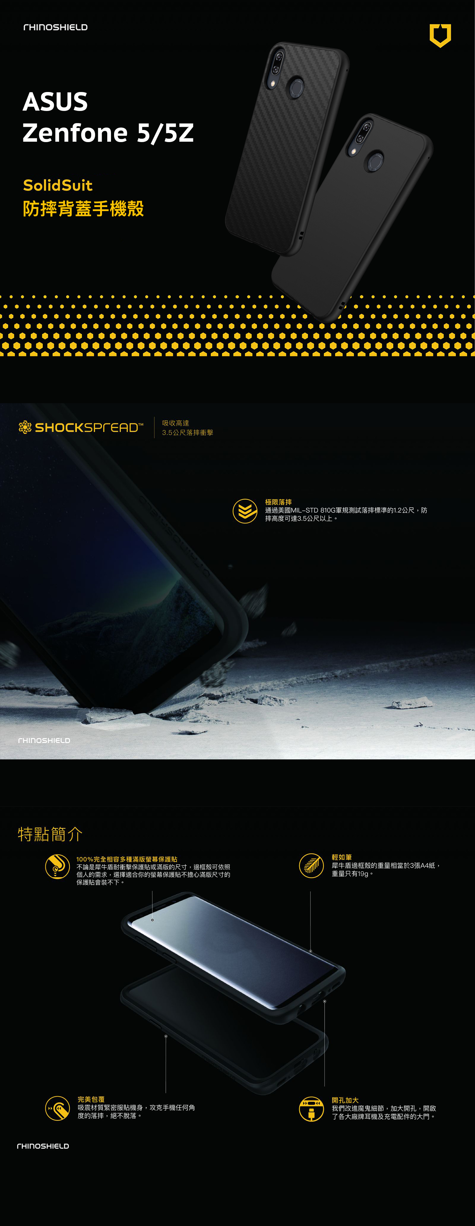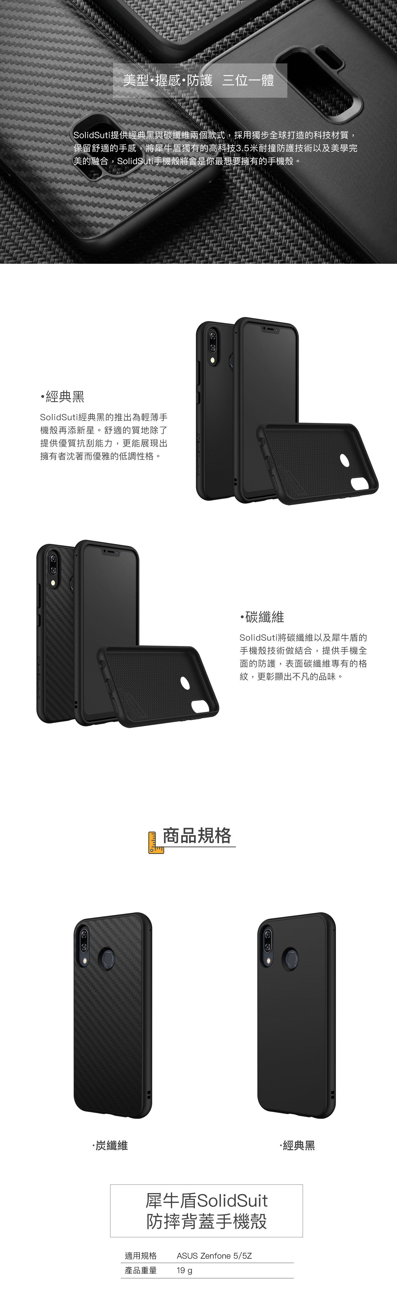 犀牛盾 ASUS Zenfone 5/5Z SolidSuit 防摔背蓋手機殼 經典黑 ZE620KL / ZS620KL