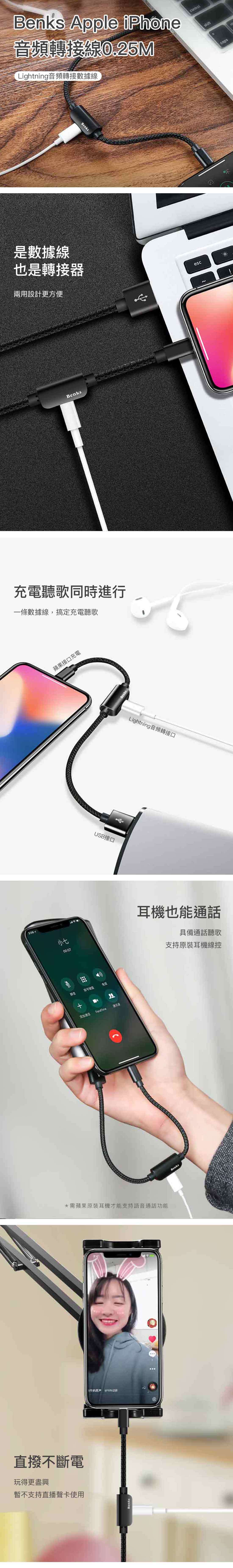 Benks Apple iPhone 音頻轉接線