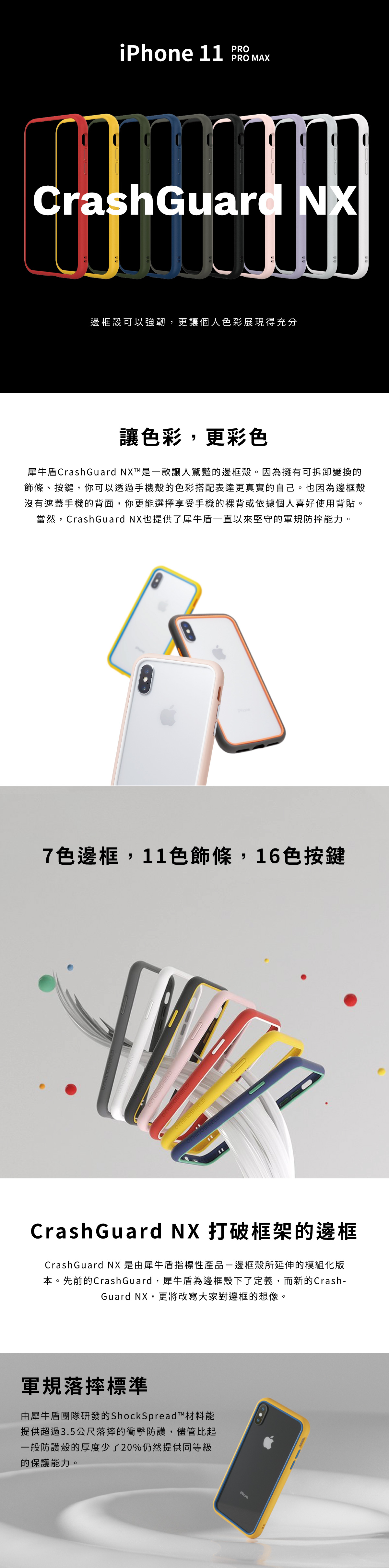【出清特價】犀牛盾 CrashGuard NX iPhone 11 Pro Max 6.5吋 防摔邊框手機殼 14色