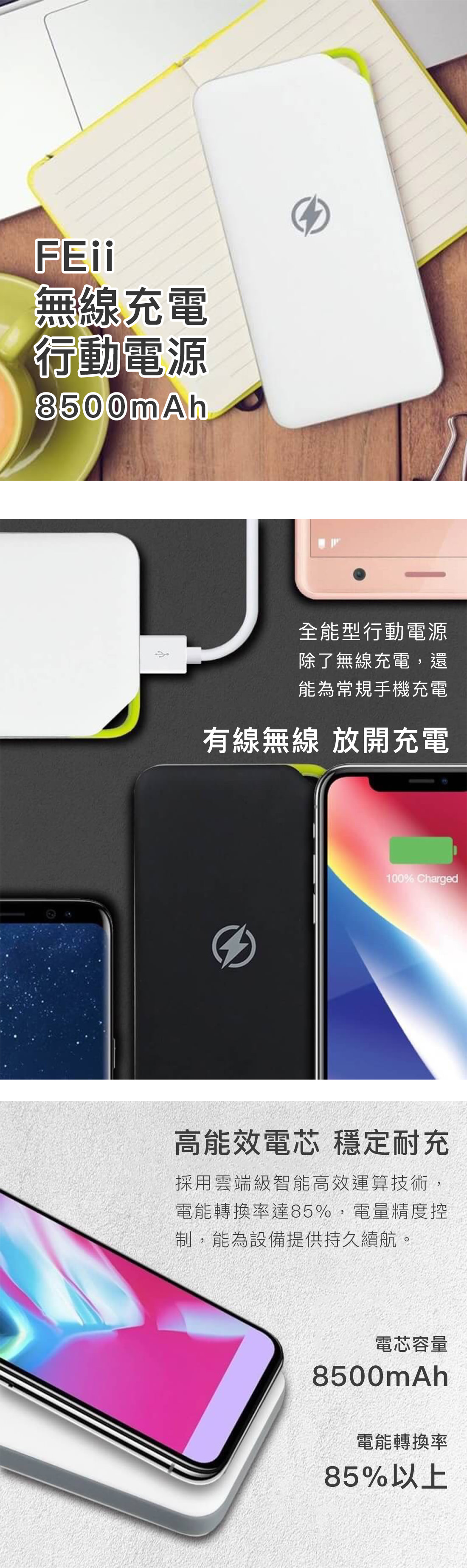 🎖FEii 無線充電行動電源 8500mAh🎖