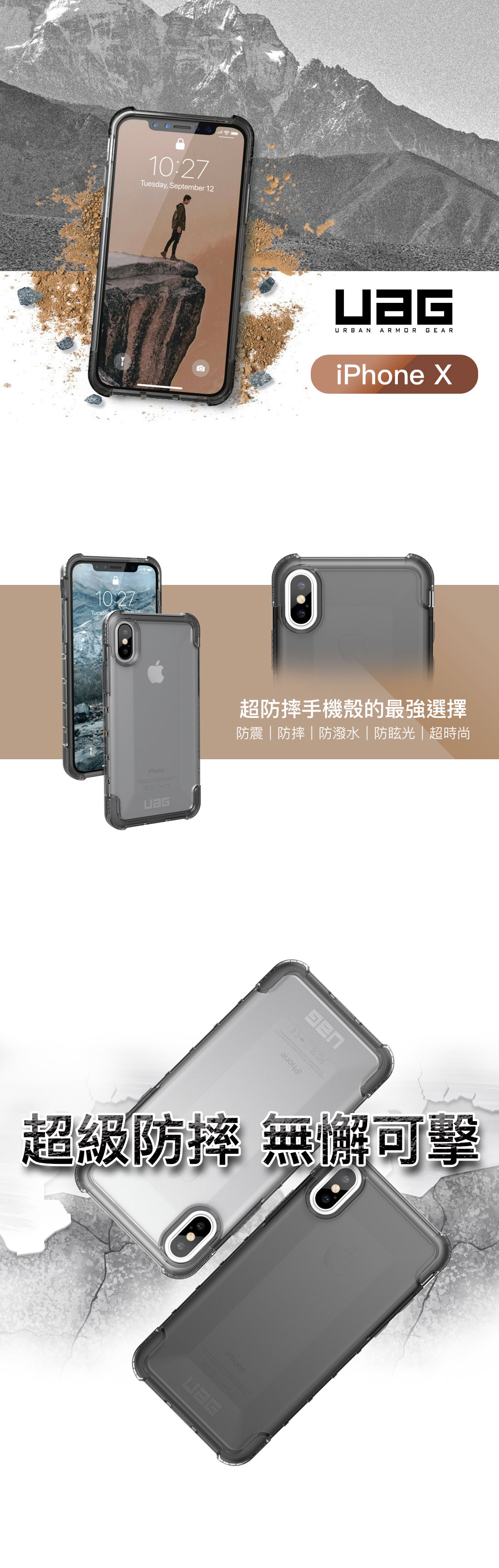 【團購77折】UAG iPhone X/XS 美國軍規 全透明耐衝擊防摔殼 保固十年
