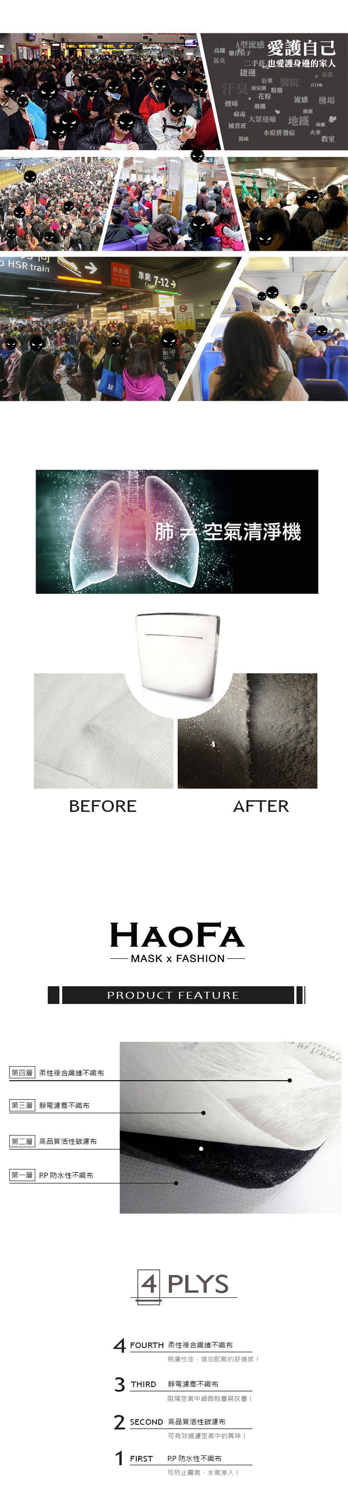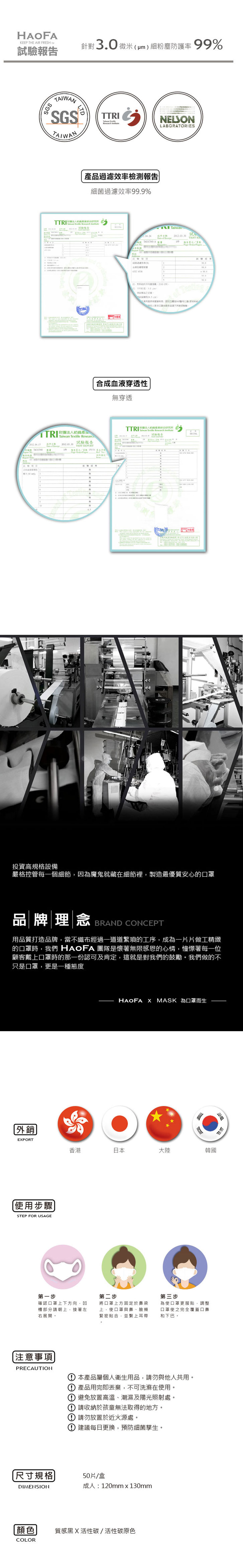 HAOFA 3D無痛感活性碳成人款立體口罩1盒50片 細菌過濾效率99.9% N95參考 武漢病毒要戴口罩防護