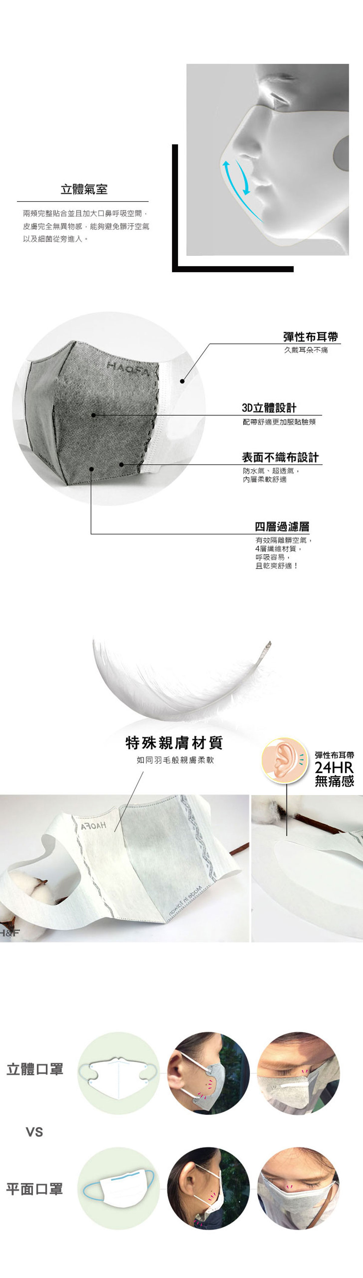 📌3D立體口鼻氣室呼吸順暢 (口鼻立體氣室,增加呼吸時舒適度,降低悶窒感)。