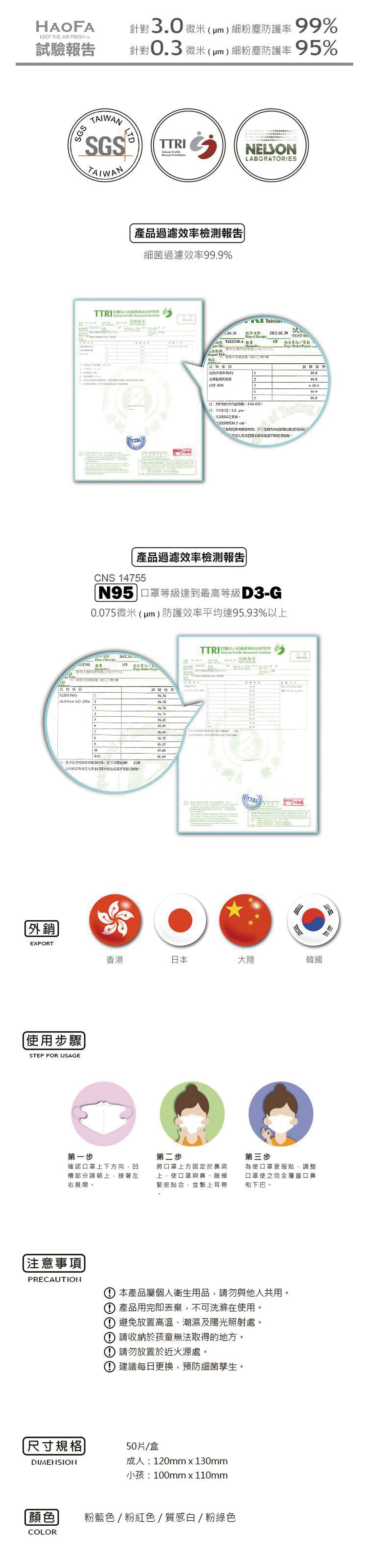 HAOFA 3D氣密型粉彩蜂巢狀活性碳成人款立體口罩1盒50片 細菌過濾效率99.9% N95認證最高等級D3-G 武漢病毒要戴口罩