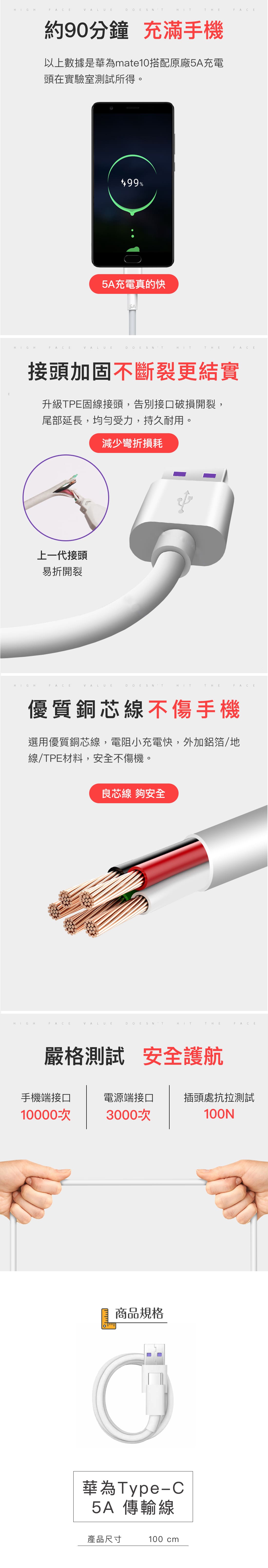 HUAWEI 華為 5A Type-C 充電傳輸線|快充線 閃充 體驗更快速的充電及數據傳輸