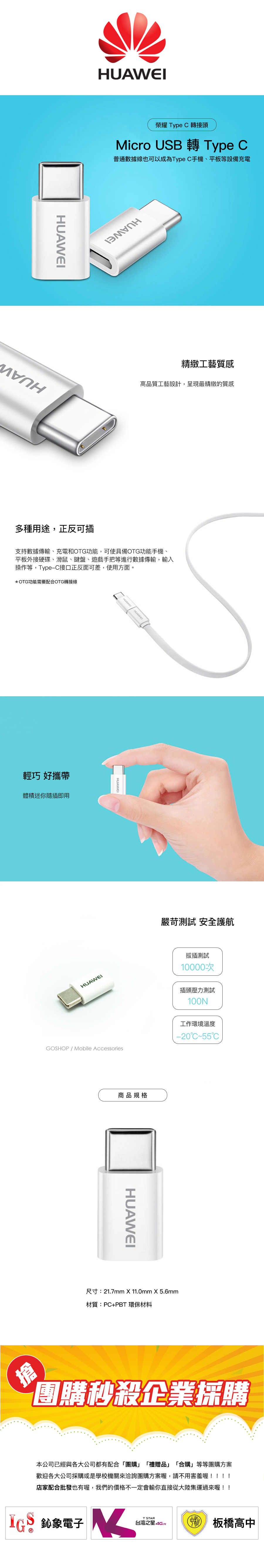 HUAWEI 華為原廠 Type-C 轉接頭 Micro USB 轉 TypeC 充電線/傳輸線轉接器 SONY XZ HTC10 M10 ASUS Zenfone3 LG G5