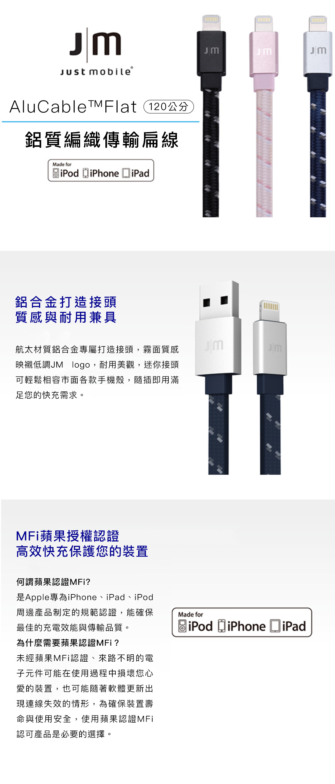 Just Mobile ZinCable 1.2米 鋅合金編織傳輸線
