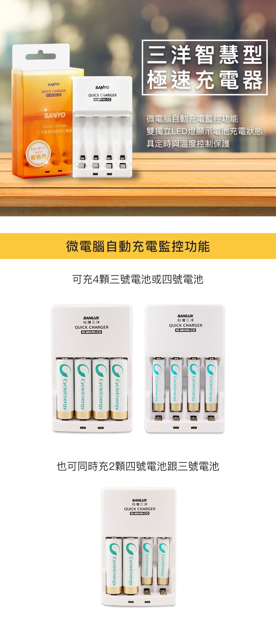 三洋 SANLUX 電池充電器|智慧極速充電器