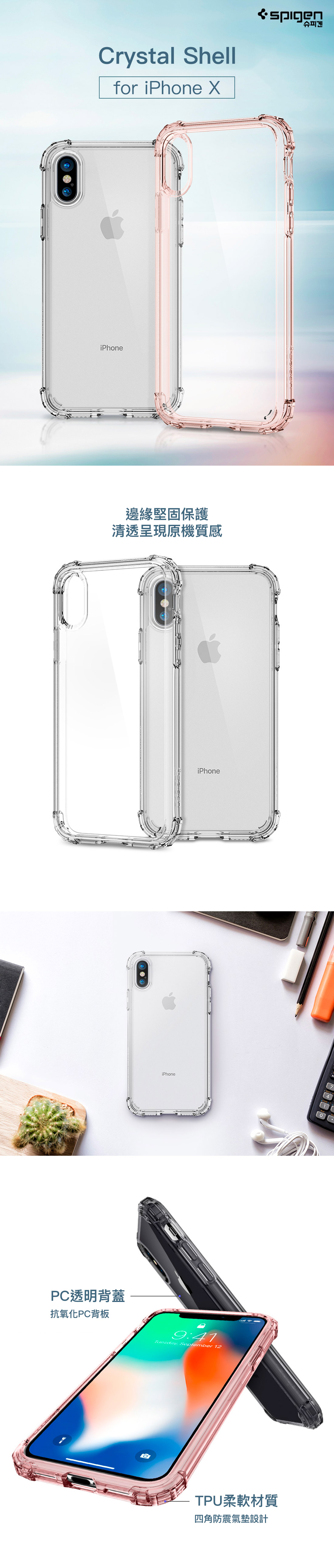 【出清特價】SGP Apple iPhone X/XS Crystal Shell 防撞防摔透明水晶殼-透明水晶(顏色請自選)