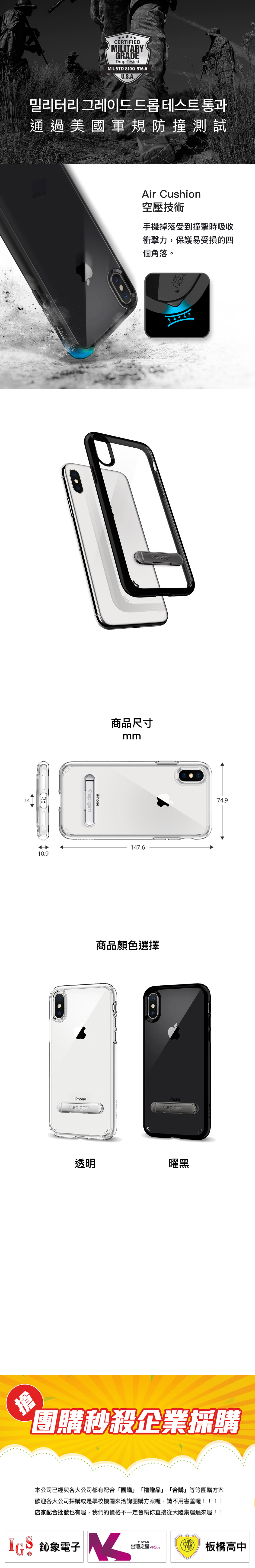 SGP iPhone X Ultra Hybrid S 彈力支架 防摔防撞 手機殼-透明