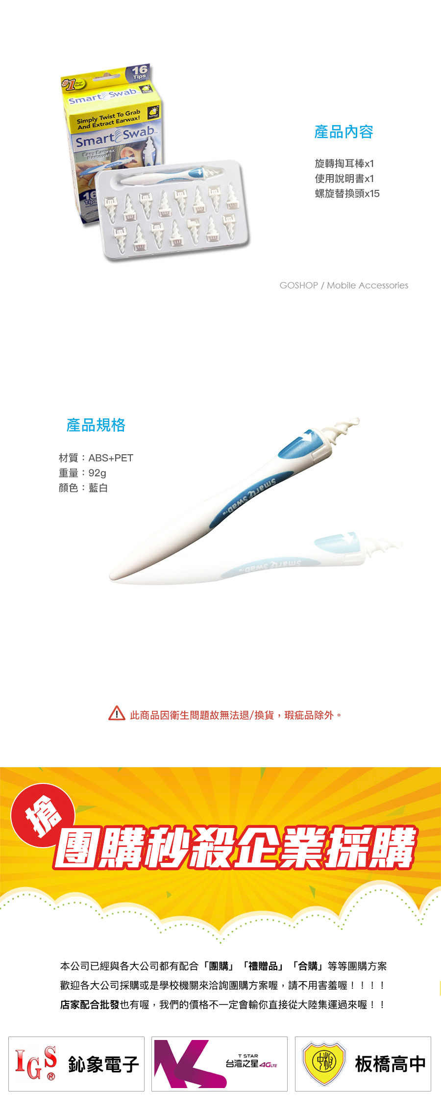 Smart Swab 旋轉掏耳棒 安全 耳朵 清潔 潔耳器 吸耳器 挖耳棒 耳扒 挖耳朵 掏耳朵 耳屎