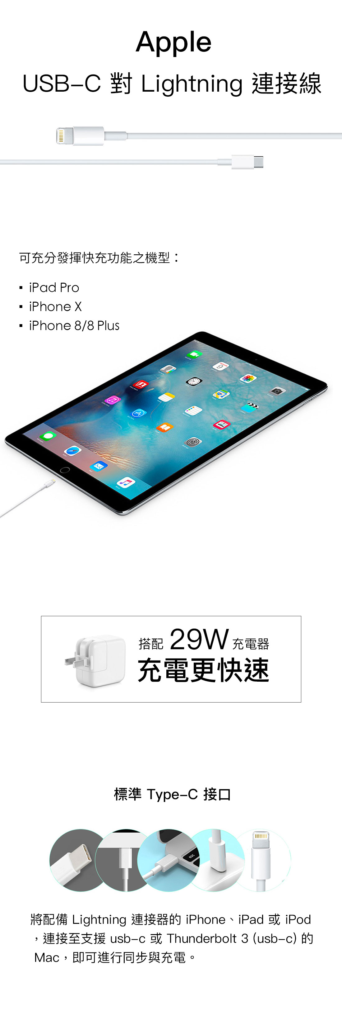 USB-C 對 Lightning 連接線 Type-C 標準接頭