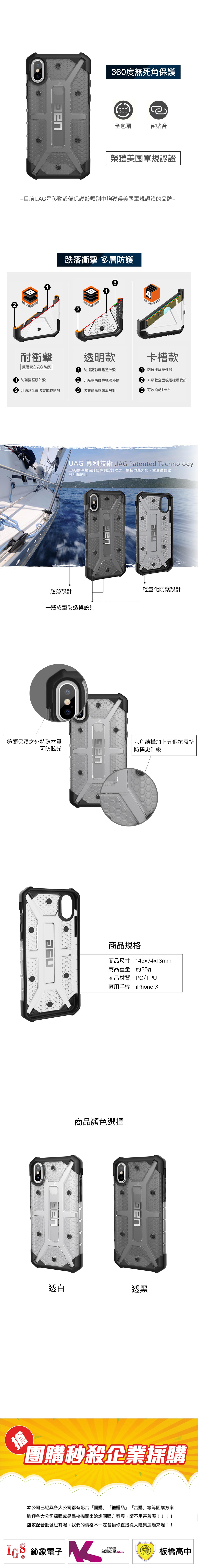【出清特價】UAG iPhone X/XS 美國軍規 透明款 耐衝擊 保護殻 保固十年-透黑