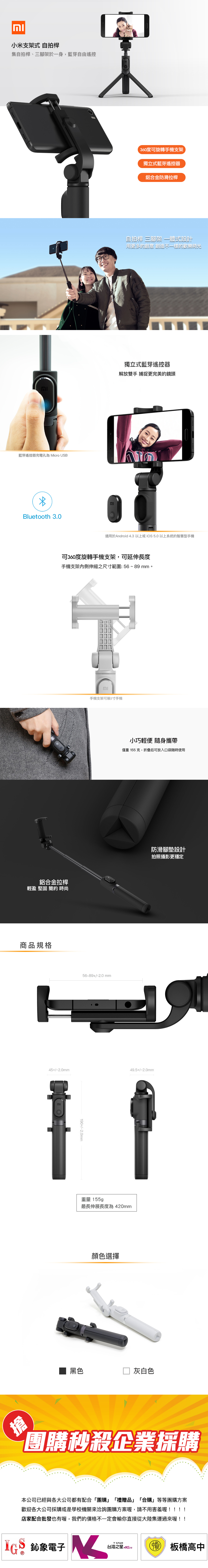 小米支架式自拍桿 既是自拍桿 也是三腳架 藍牙遙控